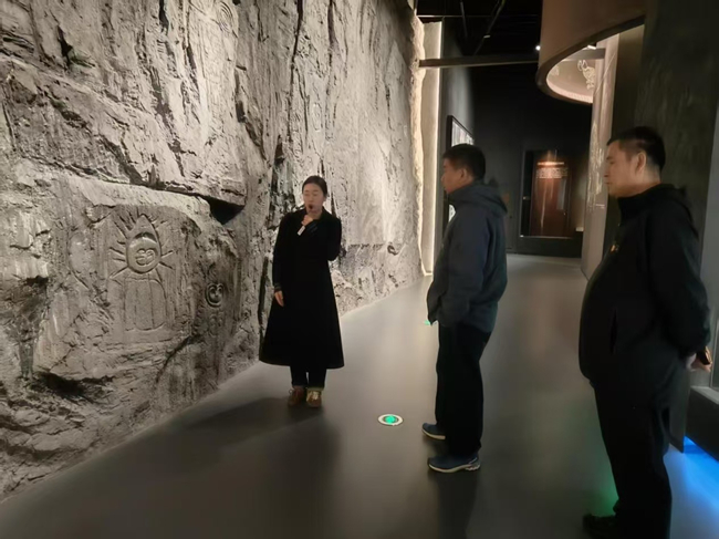 在博物院展廳內(nèi),黨員們循著“黃河從草原上流過——鄂爾多斯歷史文化陳列”的脈絡(luò)沉浸式參觀。從“河套人頭蓋骨”見證的遠(yuǎn)古文明,到“朱開溝中華第一銅劍”承載的早期冶金技術(shù),從“鄂爾多斯青銅器”展現(xiàn)的草原絲路風(fēng)采,到VR技術(shù)復(fù)原的秦直道盛景,文物與科技的融合讓大家直觀感受了黃河文化、草原文化與農(nóng)耕文化在鄂爾多斯的碰撞交融 。在“桌子山太陽神巖畫”等文物前,黨員們駐足細(xì)品,深入了解鄂爾多斯地區(qū)在多民族交往交流交融中的重要歷史地位,進(jìn)一步堅定了文化自信。