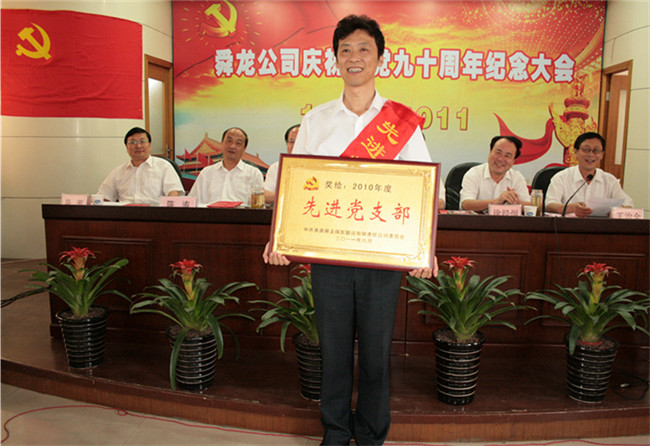 黨委委員劉曹應(yīng)同志宣讀了市委和市經(jīng)信委黨委表彰決定,舜龍公司黨委榮獲市經(jīng)信委先進(jìn)基層黨組織榮譽(yù)稱號(hào),公司黨委書記余龍懷同志榮獲市經(jīng)信委優(yōu)秀黨務(wù)工作者稱號(hào),梁斌同志榮獲市優(yōu)秀共產(chǎn)黨員,劉樹剛、梁斌、王光兵三位同志獲得市經(jīng)信委優(yōu)秀黨員稱號(hào)。會(huì)上還對(duì)在2010年度公司“創(chuàng)先爭優(yōu)”活動(dòng)中表現(xiàn)突出的先進(jìn)黨支部和7名優(yōu)秀共產(chǎn)黨員進(jìn)行了表彰。