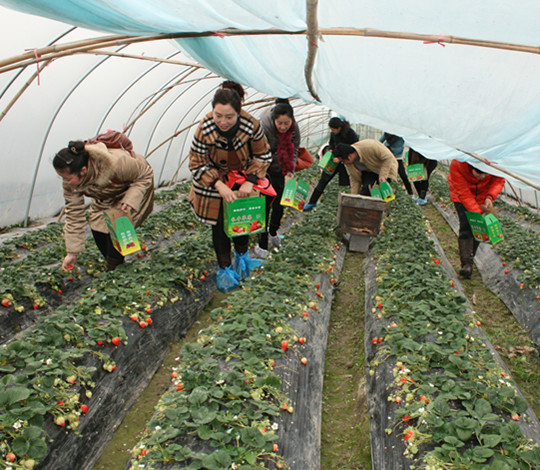 和風徐徐,草木吐綠,草莓大棚里一派生機勃勃的景象。新鮮的草莓,個個顆粒飽滿,鮮紅欲滴,聞著水果散發(fā)出的清香,女職工們俯首彎腰,辛勤勞作,一邊輕巧地采著那飽滿的果實,一邊嘗著新鮮,她們在勞動中收獲豐碩的果實,享受節(jié)日的快樂。