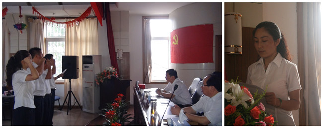 黨委委員陳濤同志宣讀了公司黨委《關(guān)于接收預(yù)備黨員和預(yù)備黨員轉(zhuǎn)正的審批意見》,預(yù)備黨員們在鮮紅的黨旗下莊嚴宣誓,業(yè)務(wù)管理部黨支部王育紅同志代表預(yù)備黨員做了發(fā)言。