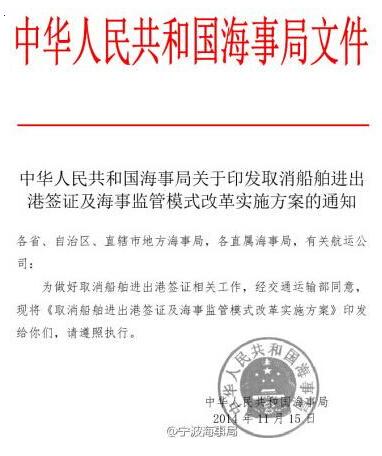 取消船舶進(jìn)出港簽證及海事監(jiān)管模式改革實(shí)施方案