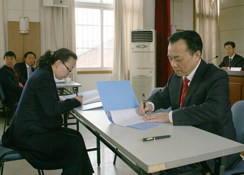 董事長(zhǎng)、黨委書記劉曹應(yīng)與工會(huì)代表簽訂《舜龍公司工資集體合同書》