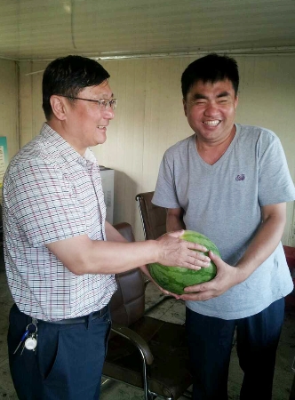 黨委委員、總經(jīng)理馬剛為業(yè)務(wù)員送上西瓜