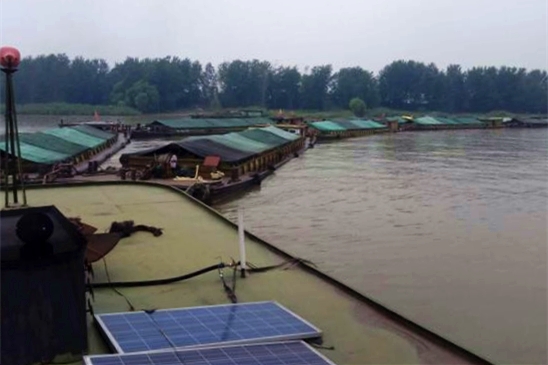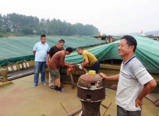8月底,多年不見的淮河秋汛不期而至且來勢兇猛,這一警汛引起淮河事業(yè)部管理層的高度重視,立即召開專門會議研究制定渡汛方案和措施,要求船隊全體人員分成兩班堅守船隊,確保船長、輪機長盯守值班,主機保持隨時啟動狀態(tài);駁船人員在船隊長的帶領下保證白天上下午的兩次巡查,夜班上下半夜不低于四次巡查,對任何安全隱患、蛛絲馬跡都要高度重視,不查明原因絕不放過,查明原因則立即整改和處理。9月5日夜21時許、9日中午11時許,兩次犁錨都因船隊及時啟動應急方案,第一時間動員船隊干員,及時開動輪船及小機船,采取前拖后推措施,重新下錨穩(wěn)定船隊,避免了船隊一起安全事故的發(fā)生。9月11日傍晚,一友鄰船隊也出現(xiàn)隨河道主流整隊無動力下行飄移的險情,舜龍9號隊以及其他在附近的船隊應該隊請求,投入搶險護拖,使該隊化險為夷,展現(xiàn)了舜龍船隊很強的專業(yè)機動應急能力,譜寫了一曲精誠合作共度險關(guān)的友誼篇章。