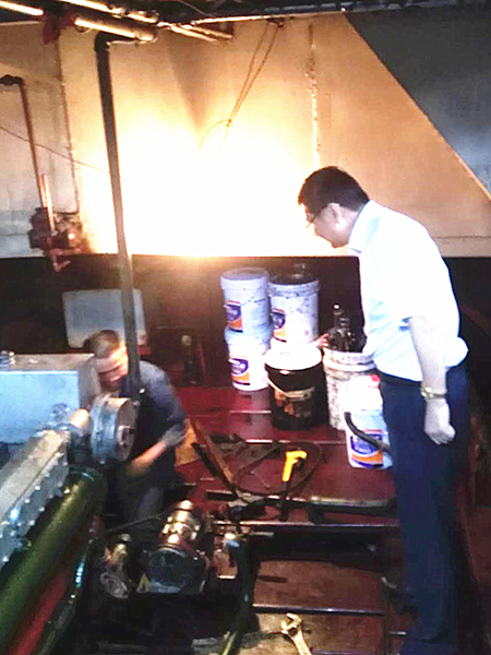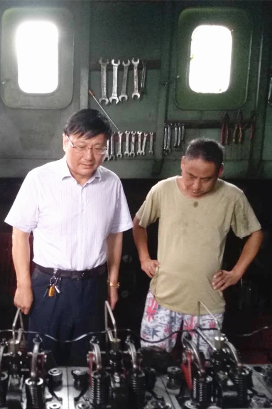 在無(wú)錫能達(dá)東亭電廠,他來(lái)到待卸的舜龍9號(hào)船隊(duì)檢查指導(dǎo),在機(jī)艙聽(tīng)取了船隊(duì)長(zhǎng)等人對(duì)主機(jī)目前運(yùn)行總體狀況的匯報(bào)之后,馬總指出,安全航行來(lái)不得半點(diǎn)馬虎。船隊(duì)要準(zhǔn)確真實(shí)的掌握設(shè)備運(yùn)行狀況,對(duì)已到維修保養(yǎng)日期的而暫時(shí)不方便安排大修的部件,要重點(diǎn)關(guān)注;對(duì)出現(xiàn)的安全隱患要及時(shí)排除。中午,馬總一行頂著酷暑、風(fēng)塵仆仆趕到揚(yáng)州江岸港口浮吊,調(diào)研返程貨源市場(chǎng)情況。他提出,船隊(duì)安全航行和市場(chǎng)開(kāi)發(fā)拓展、多拉快跑經(jīng)營(yíng)創(chuàng)效是相輔相成的,三方關(guān)系要協(xié)調(diào)好,不能顧此失彼。公司各船隊(duì)要想方設(shè)法開(kāi)展雙向物流,降低航次成本,以彌補(bǔ)下水航次效益的不足,增加船隊(duì)人員的經(jīng)濟(jì)收入,確保隊(duì)伍穩(wěn)定,維持大家的基本生活水平不下降。