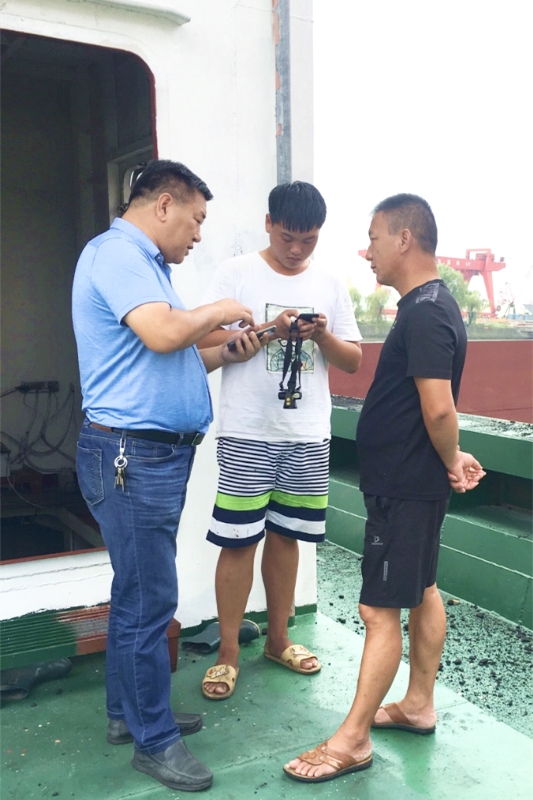 李多軍總經(jīng)理帶著大家登船,與船東們進(jìn)行溝通交流,了解船東需求。在交流過程中,他向船東介紹推廣物聯(lián)手機(jī)APP,親自示范操作步驟和流程,宣傳平臺(tái)使用的必要性。船東們紛紛表示愿意與舜龍公司合作,因?yàn)椴粌H貨源有保障,而且資金安全,風(fēng)險(xiǎn)小,為他們提供了方便。他們還就手機(jī)APP操作細(xì)節(jié)提出了自己的一些意見和建議。通過了解生產(chǎn)一線人員對(duì)物聯(lián)平臺(tái)的反饋,有助于今后平臺(tái)技術(shù)改善和運(yùn)營(yíng)推廣。