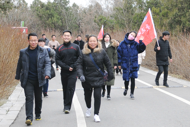 在迎新健步走比賽中,參賽職工一邊賞景敘情,一邊奮力前行,享受著健康運(yùn)動帶來的身心愉悅。