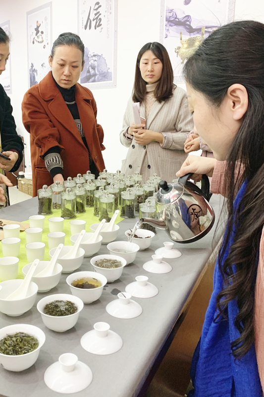 公司女職工認(rèn)真學(xué)習(xí)茶藝知識