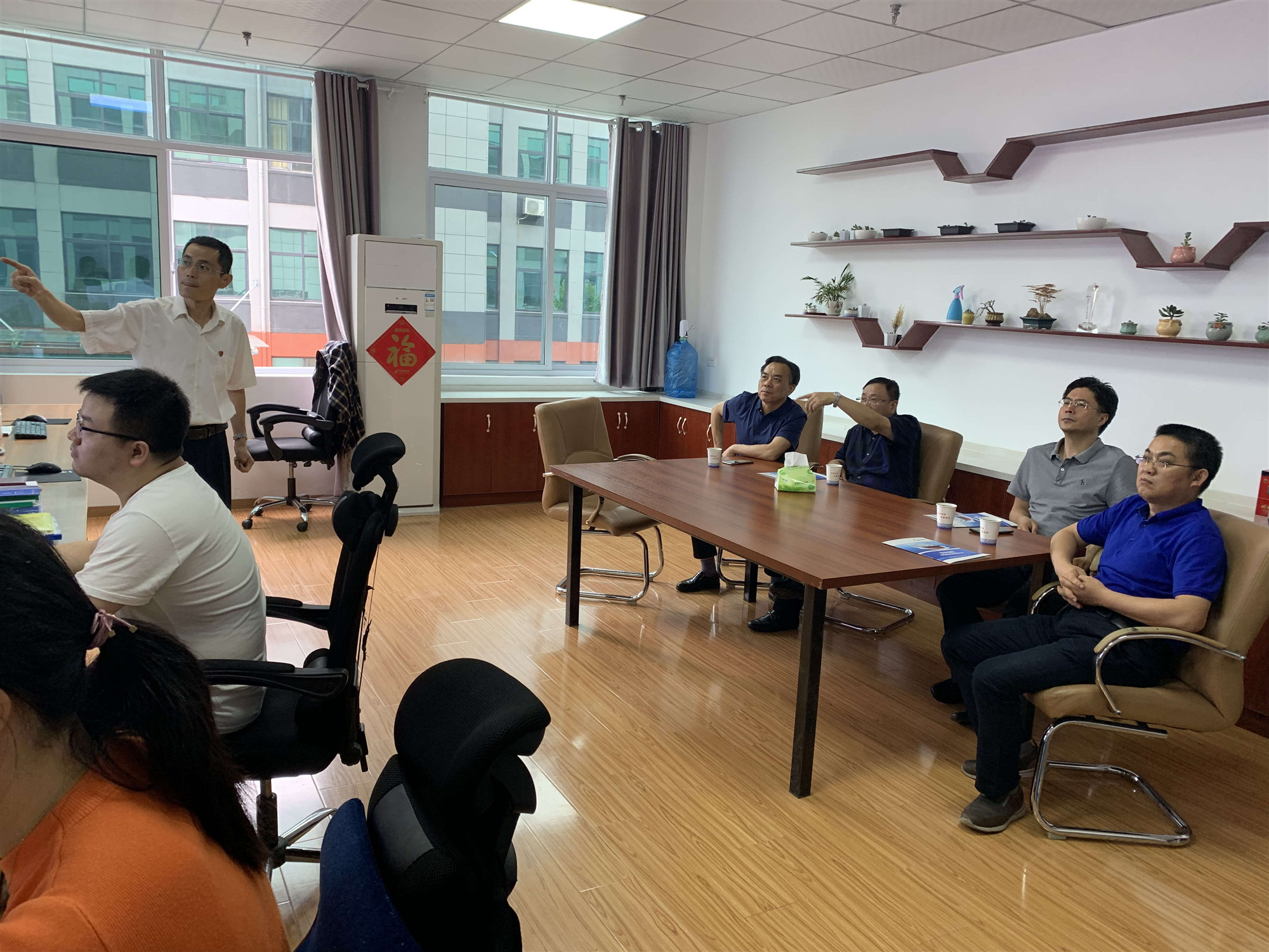 6月18日上午,集團(tuán)公司市場(chǎng)營(yíng)銷部部長(zhǎng)楊庭生,副部長(zhǎng)張業(yè)松、高寒等相關(guān)領(lǐng)導(dǎo),來(lái)到位于山南科技孵化器舜龍公司調(diào)度展示中心調(diào)研指導(dǎo)。公司黨委書(shū)記、董事長(zhǎng)劉曹應(yīng)陪同調(diào)研并進(jìn)行了交流。
