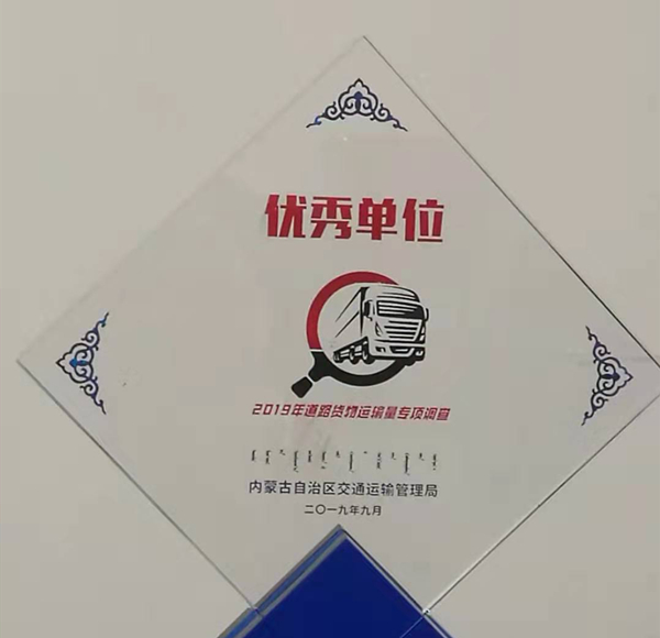 近日,鄂爾多斯市舜龍公司榮獲2019年內(nèi)蒙古自治區(qū)道路貨物運(yùn)輸量專項(xiàng)調(diào)查優(yōu)秀單位稱號。