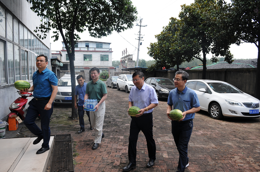 連日高溫,驕陽似火。為做好高溫季節(jié)防暑降溫工作,切實(shí)保障一線職工的安全健康。8月4日上午,公司黨委副書記、總經(jīng)理馬剛,黨委副書記、紀(jì)委書記、工會(huì)主席梁斌,財(cái)務(wù)總監(jiān)陳學(xué)忠在淮河物流事業(yè)部總經(jīng)理班友慧、經(jīng)營發(fā)展(業(yè)務(wù)管理)部部長鄒建春的陪同下親臨河南周口市劉灣港煤場看望慰問一線職工,送去西瓜等防暑降溫物品,并把組織關(guān)懷送到職工心坎上。
