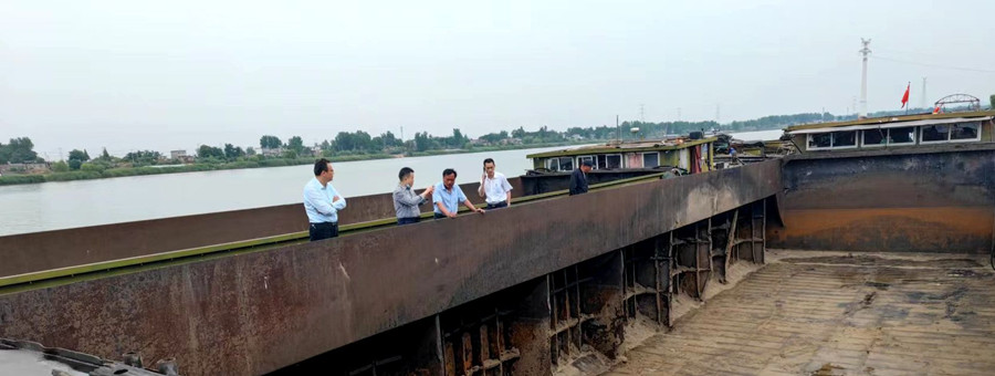 2022年5月26日,公司黨委委員、副總經(jīng)理班友慧帶隊(duì)到舜龍8號(hào)船隊(duì)檢查指導(dǎo)工作,安監(jiān)辦主任鄒建春、淮河物流事業(yè)部總經(jīng)理徐新懷陪同檢查。