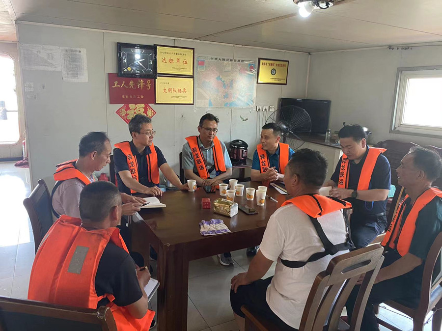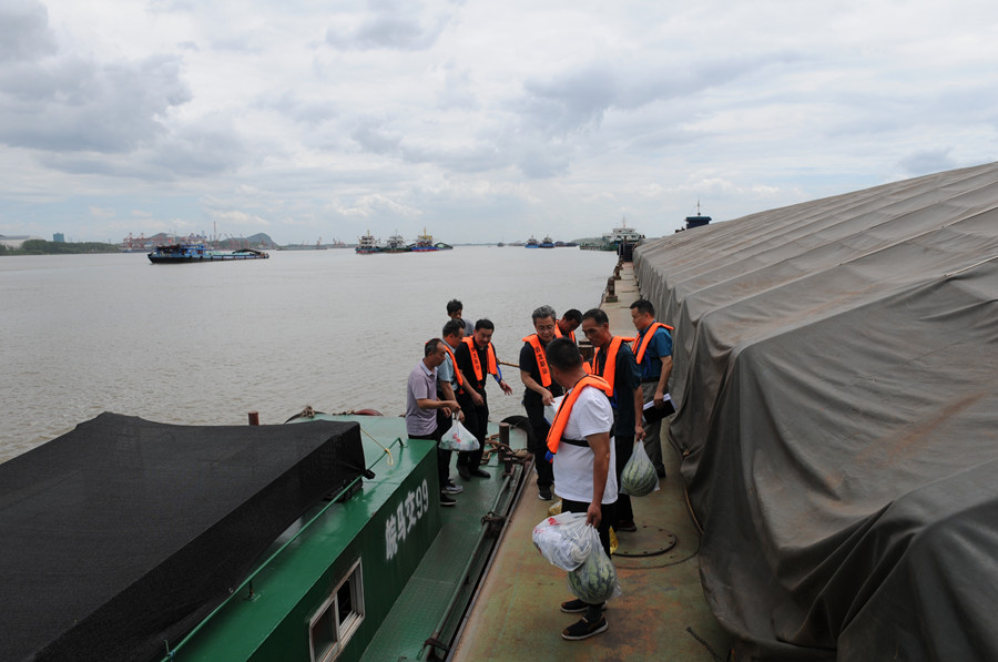 6月21日,公司黨委副書(shū)記、紀(jì)委書(shū)記、工會(huì)主席梁斌,副總經(jīng)理班友慧一行冒著高溫酷暑對(duì)停靠在馬鞍山馬二電碼頭的舜龍18號(hào)江輪進(jìn)行了安全生產(chǎn)檢查,并帶去了防暑物品進(jìn)行了慰問(wèn)。