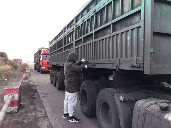 唐家會礦為響應(yīng)地方防疫政策必須做到與司機(jī)零接觸,不能使用手寫提煤單模式,應(yīng)急啟動無人值守過磅裝車系統(tǒng),該系統(tǒng)要求分公司業(yè)務(wù)員指導(dǎo)運(yùn)煤司機(jī)通過微信小程序搜索唐家會運(yùn)銷系統(tǒng)司機(jī)端注冊平臺,分公司業(yè)務(wù)員通過電話指導(dǎo)運(yùn)煤司機(jī)在平臺上傳車輛行駛證、道路運(yùn)輸證、駕駛證、身份證等相關(guān)證件進(jìn)行平臺注冊,再由分公司業(yè)務(wù)員唐家會運(yùn)銷系統(tǒng)貨主端輸入運(yùn)往地、銷售用途、車號給予運(yùn)煤司機(jī)下發(fā)電子提煤單后,運(yùn)煤司機(jī)就會在平臺中會接收到自己的電子提煤單拉運(yùn)信息與二維碼,指導(dǎo)司機(jī)核對運(yùn)往地、車號等消息,后進(jìn)礦指導(dǎo)回皮、裝車、過重怎么掃電子提煤單二維碼。期間,分公司業(yè)務(wù)員胡肖騰、郭慶賀冒著零下10多度的嚴(yán)寒,在車輛進(jìn)礦之前必須做到運(yùn)煤司機(jī)車輛栓封鉛工作與封鉛號的登記,給予司機(jī)車門兩側(cè)粘貼封條,做到運(yùn)煤司機(jī)在拉運(yùn)任務(wù)中不需下車,運(yùn)煤車輛進(jìn)礦前進(jìn)行外部消毒一次,在此期間司機(jī)一律不準(zhǔn)下車,全都由分公司業(yè)務(wù)員去完成。按唐家會礦要求:一是核對、整理每日運(yùn)煤核銷報(bào)告截圖分線路統(tǒng)計(jì),對當(dāng)日運(yùn)煤司機(jī)的核酸報(bào)告需是24小時(shí)以內(nèi),超過24小時(shí)不予下發(fā)拉運(yùn)任務(wù),行程碼需只有鄂爾多斯市,不能有其它地方的行程,有其它地方的行程也不予下發(fā)拉運(yùn)任務(wù);二是做好當(dāng)日運(yùn)煤司機(jī)和預(yù)報(bào)第二天運(yùn)煤司機(jī)分線路個(gè)人信息臺賬,對當(dāng)日運(yùn)煤司機(jī)個(gè)人信息統(tǒng)計(jì)車號、姓名、身份證、電話、詳細(xì)住址、核酸報(bào)告時(shí)間等做好記錄。核對整理之后報(bào)于礦方。