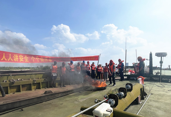 到達(dá)船隊后,領(lǐng)導(dǎo)一行對舜龍8-9號船隊救生消防設(shè)備以及船舶的維修保養(yǎng)等船況進(jìn)行了重點檢查,并對檢查過程中發(fā)現(xiàn)的問題提出了整改建議。隨后,組織舜龍8-9號船隊開展了以“人人講安全、個個會應(yīng)急”為主題的船舶消防滅火安全應(yīng)急演練。