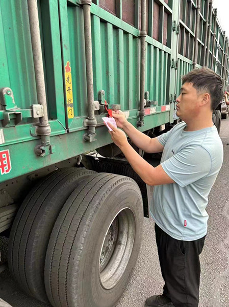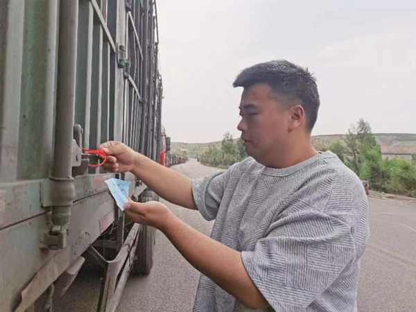西部物流事業(yè)部鮑廣峰在唐家會礦發(fā)運(yùn)現(xiàn)場檢查車輛封簽及出礦榜單