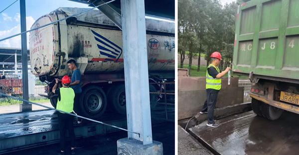 淮河物流事業(yè)部王凱、朱亮分別在平圩電廠、店集碼頭對返裝煤進(jìn)行現(xiàn)場管理