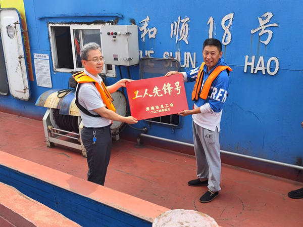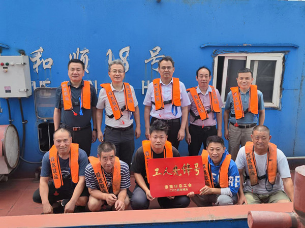 5月份,和順18號江輪被淮南市總工會授予“淮南市工人先鋒號”榮譽(yù)稱號。上船后,梁斌對和順18號舉行了授牌儀式,把這一份榮譽(yù)授予和順18號全體船員。梁斌強(qiáng)調(diào)這項榮譽(yù)是你們?nèi)w船員齊心協(xié)力安全航行、保質(zhì)保量完成公司的運輸任務(wù)的成果,是公司對你們一年來工作的充分肯定,希望在下一步工作中進(jìn)一步弘揚(yáng)勞模精神,為全體“舜龍人”做好榜樣。
