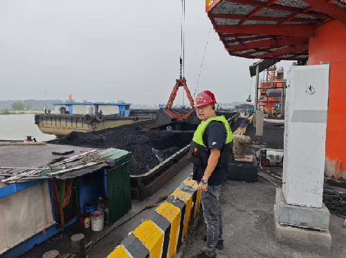 因汛期洪水上漲導(dǎo)致進(jìn)電廠碼頭的道路被淹,人員無法進(jìn)出,區(qū)域經(jīng)理積極與長能公司和電廠進(jìn)行協(xié)商,同意我們現(xiàn)場工作人員從電廠的運(yùn)煤輸送皮帶通道進(jìn)出,通道里密不透風(fēng)而且距離很長,每次通過時(shí)我們要?jiǎng)澲鹌ねнM(jìn)出碼頭驗(yàn)倉卸貨,急客戶之所急,想客戶之所想,齊心協(xié)力,不畏艱難,不懼酷暑。