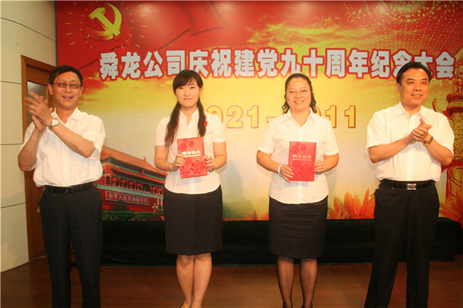 公司董事長(zhǎng)、黨委書(shū)記余龍懷同志向榮獲演講比賽一等獎(jiǎng)的吳迪同志頒獎(jiǎng)。