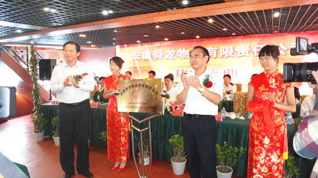 淮南礦業(yè)集團(tuán)副總經(jīng)理?xiàng)盍?、蕪湖縣委書記何友旺共同為安徽舜龍物流有限責(zé)任公司揭牌