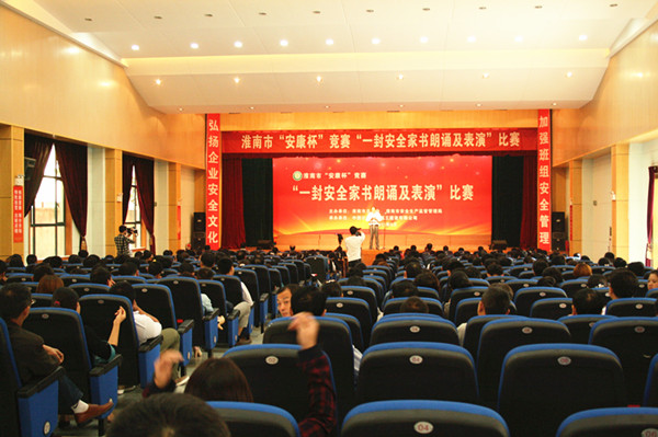 9月26日上午,由淮南市總工會和淮南市安全生產(chǎn)監(jiān)督管理局聯(lián)合主辦的淮南市“安康杯”競賽“一封安全家書朗誦及表演”比賽(決賽)在化三建禮堂如期舉行。共有25家單位36人參加此次比賽。公司工會精心組織,選派了朱梅、高翔、劉青三名選手參加此次朗誦比賽,由25名職工組成的拉拉隊在工會主席王治全的帶領(lǐng)下觀看了比賽,為參賽選手們加油吶喊。