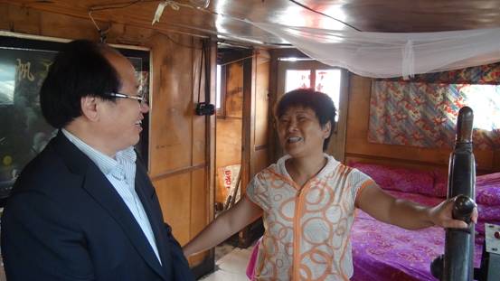 回到輪船上,余董事長又和船長、輪機長進行了長時間的面對面交流,并征求意見。“船長,我們這次跟船是想切身感受一下你們的生活和工作情況,順便想聽一聽你們在工作中有哪些困難和問題需要公司解決?對船隊的安全運行、多拉快跑有什么好的建議?”船長王科才、輪機長李順龍表示非常感謝公司領導能夠親自跟船考察。他們說:“一定會嚴格按照公司的安全要求切實履行職責,并帶領船員共同做好本職工作,讓船舶安全,讓船員平安。”在寬松的氛圍里,隊長劉永玉插話說:“說實話,如今航運經濟低迷,我們公司營運較困難,但在船員們在公司工作多年,對公司領導的關心一直記在心上,我們船隊堅信情況會好轉。駁船上基本上是夫妻,生活上沒有問題,就是希望能多跑航次提高收入,目前船員隊伍是穩(wěn)定的,請領導放心。”
