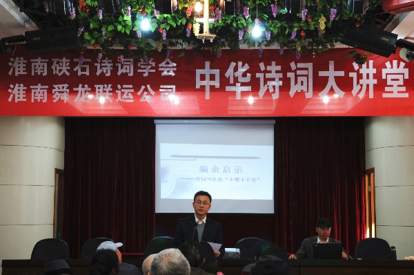 “早春二月,綠柳拂堤”。在這樣一個春和景明的美麗季節(jié)里,舜龍公司二樓會議室里,韻律悠揚,詩意盎然。由淮南硤石詩詞學(xué)會、舜龍公司聯(lián)合舉辦的中華詩詞大講堂開講了!