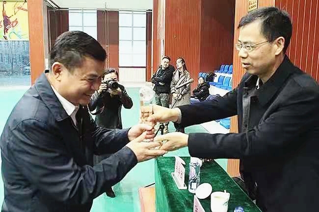 西部公司總工程師疏義國為舜龍代表隊頒發(fā)“道德風尚獎”獎杯