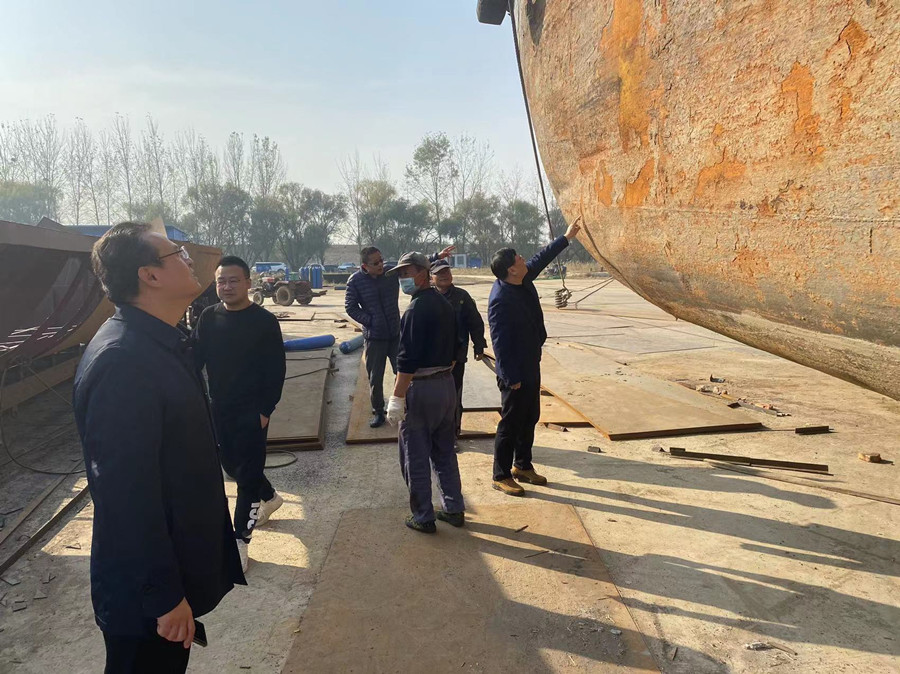 (注:公司總經(jīng)理馬剛、副總經(jīng)理班友慧深入船廠(chǎng),檢查修船質(zhì)量,督促修船進(jìn)度,現(xiàn)場(chǎng)解決修船方案)