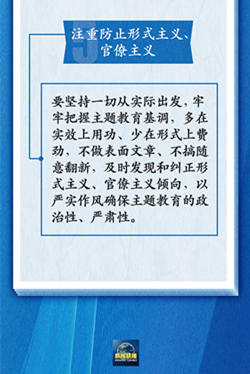 “要把實(shí)的要求貫穿主題教育全過(guò)程,堅(jiān)決防止和克服形式主義、官僚主義,實(shí)實(shí)在在抓好理論學(xué)習(xí)和調(diào)查研究,實(shí)實(shí)在在檢視整改突出問(wèn)題,實(shí)實(shí)在在辦好惠民利民實(shí)事,用實(shí)干推動(dòng)發(fā)展、取信于民。”